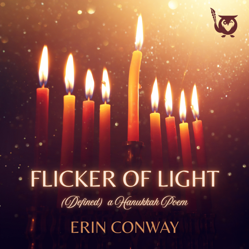 Eight nights. Flicker: By definition, “natural agents that stimulate sight and make things visible.” $2 twinkle strands around an old washstand. Bright, reddened gold.